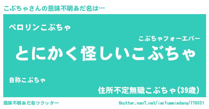 | 女子向けラノベタイトル風あだ名 | 『こぶちゃ様がみてる』 |