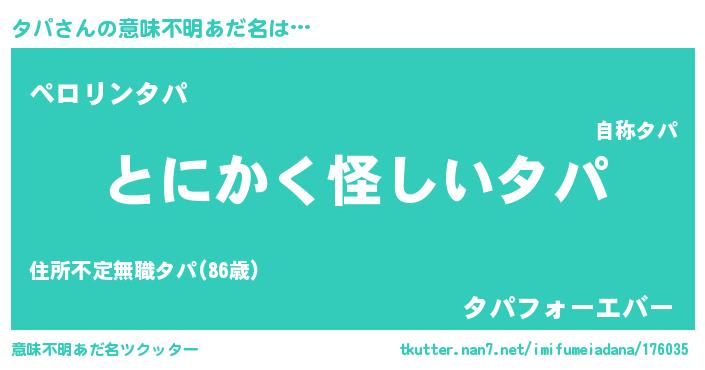 | 男性向けラノベタイトル風あだ名 | 『ダンジョンにタパを求めるのは間違っているだろうか』 |