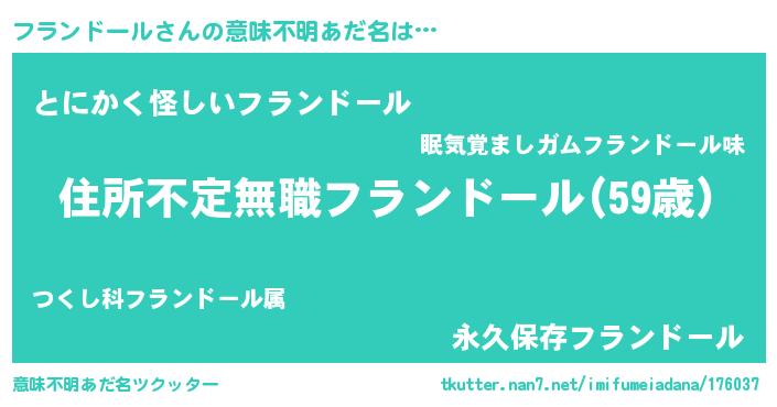 | ヒーロー風カッコイイあだ名 | 『仮面フラダー』『暗黒騎士フラ』 |
