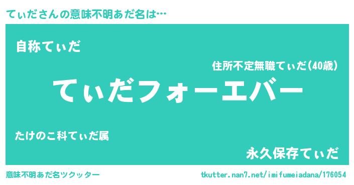 | 男性向けラノベタイトル風あだ名 | 『うちの娘の為ならば、俺はもしかしたらてぃだも倒せるかもしれない。』 |