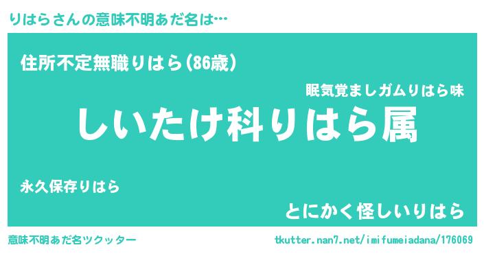 | 胡散臭い通販商品みたいなあだ名 | 『ハリウッド女優が絶賛した世界で10本だけ現存している希少なブランデー…その名も「りはら」』 |