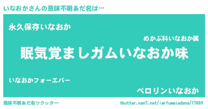 | 男性向けラノベタイトル風あだ名 | 『ノーゲーム・ノーイナオカ』 |