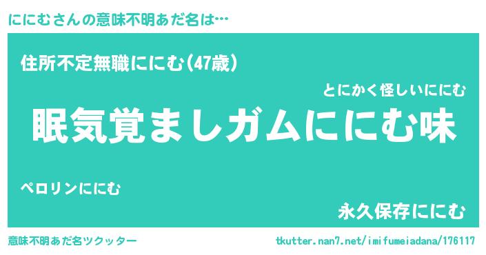 | ヘコむあだ名 | 『ににむ(笑)』『ににっちょ』 |