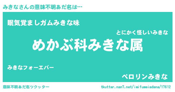| ヘコむあだ名 | 『みきにー』『みきっちょ』『豆乳』 |