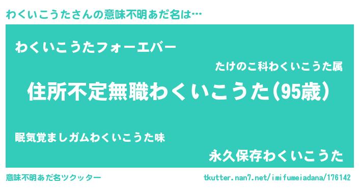 | 男性向けラノベタイトル風あだ名 | 『この素晴らしい世界にわくいこうたを!』 |