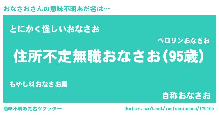 | 男性向けラノベタイトル風あだ名 | 『この素晴らしい世界におなさおを!』 |