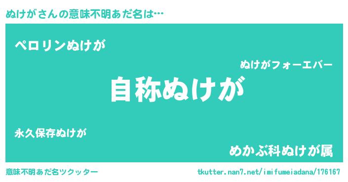 | 男性向けラノベタイトル風あだ名 | 『はたらくぬけがさま!』『ぬけがの憂鬱』 |