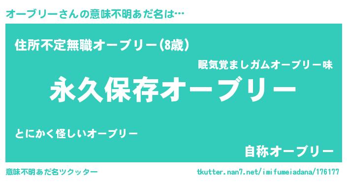 | 男性向けラノベタイトル風あだ名 | 『オーブリーという概念が存在しない退屈な世界 』 |