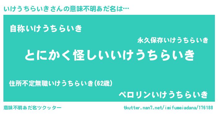 | 男性向けラノベタイトル風あだ名 | 『いけうちらいきの嫁は女の子じゃないと思った?』 |