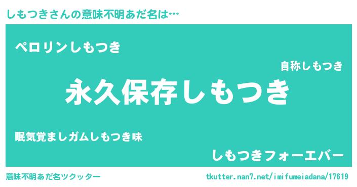 | ヘコむあだ名 | 『しもつき(笑)』『しもにゅー』 |