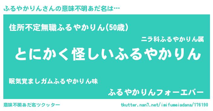 | 男性向けラノベタイトル風あだ名 | 『ふるやかりんの嫁は女の子じゃないと思った?』 |