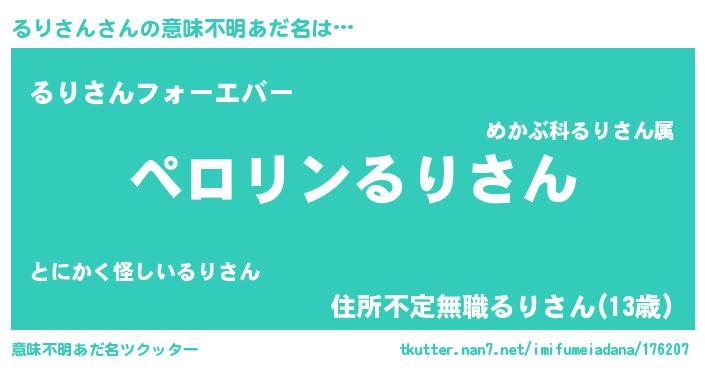 | ファンタジー風あだ名 | 『ルリフェル』『エターナルルリサンー』 |