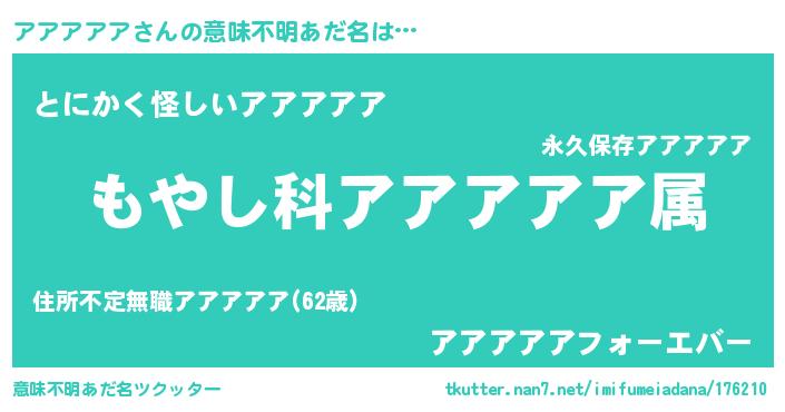 | 男性向けラノベタイトル風あだ名 | 『転生したらアアアアアだった件』 |