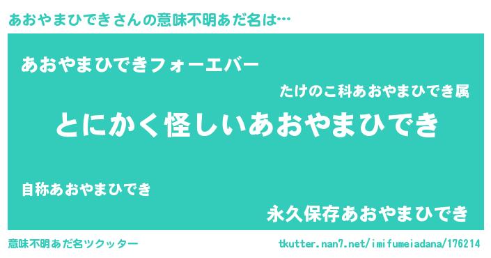 | ポケモン風あだ名 | 『ヒアオヤマヒデキ』『アオヤダネ』 |