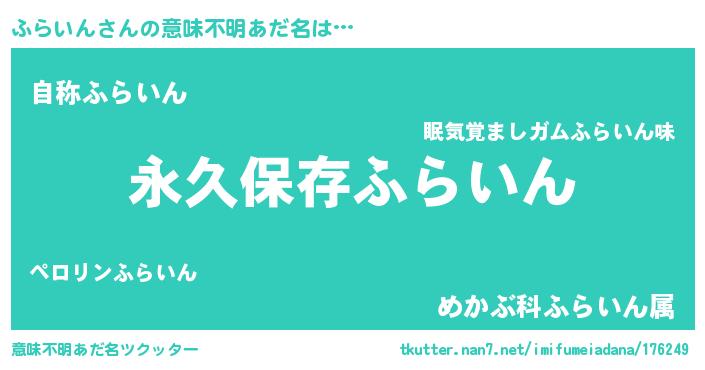 | ヘコむあだ名 | 『ふらいん(笑)』『ふらにー』 |