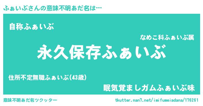 | 女子向けラノベタイトル風あだ名 | 『ふぁいぶの契約王妃』『闇のふぁいぶ』 |