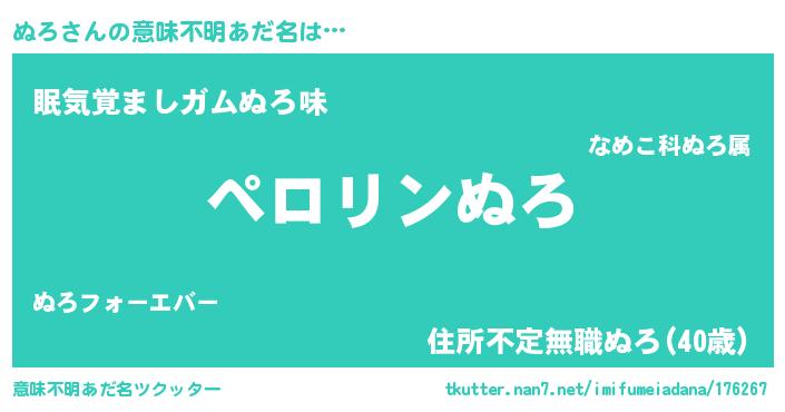 | ヒーロー風カッコイイあだ名 | 『スーパーヌロ』『正義の使者ぬろ』 |