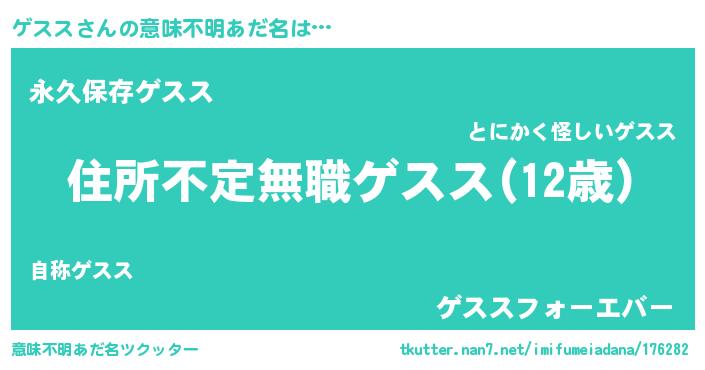| 男性向けラノベタイトル風あだ名 | 『この素晴らしい世界にゲススを!』 |