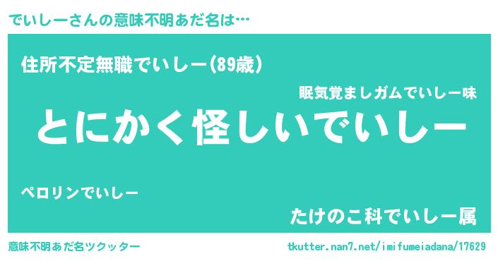| 男性向けラノベタイトル風あだ名 | 『ダンジョンにでいしーを求めるのは間違っているだろうか』 |