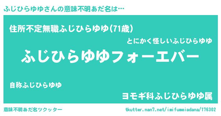 | 伝説のあだ名 | 『秘められし忍者ふじひらゆゆ』 |
