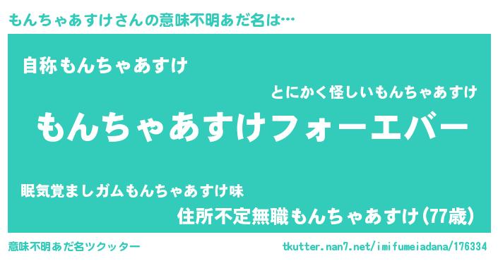 | 欧米人風あだ名 | 『もんちゃあすけクリステル』 |