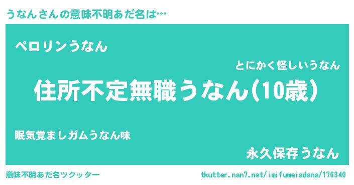 | 男性向けラノベタイトル風あだ名 | 『この素晴らしい世界にうなんを!』 |