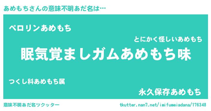 | ヒーロー風カッコイイあだ名 | 『正義の使者あめもち』『ネオアメモチ』 |