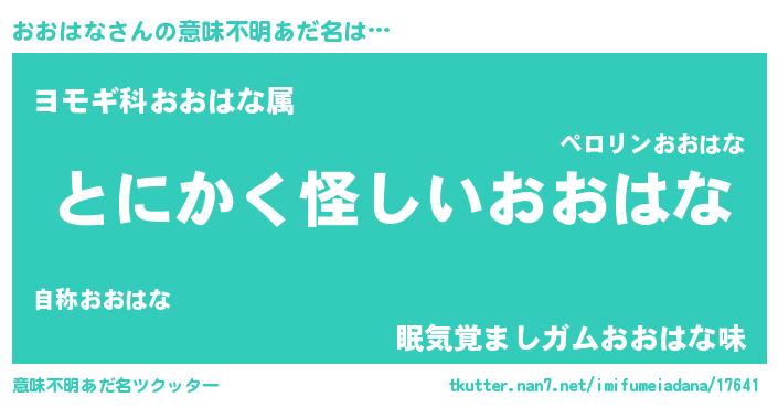 | ヒーロー風カッコイイあだ名 | 『幻影騎士オオ』『慈愛の使者おおはな』 |