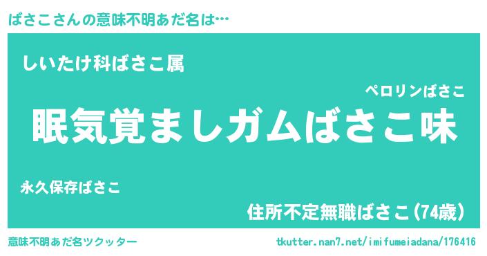 | ヘコむあだ名 | 『ばさにー』『ばさこ(笑)』『牛乳』 |
