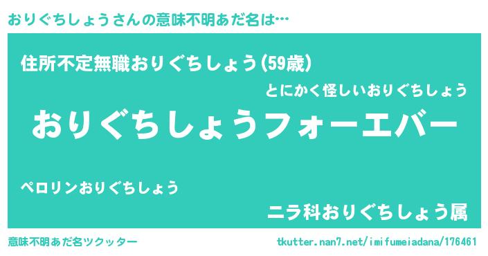 | 男性向けラノベタイトル風あだ名 | 『やはりおりぐちしょうの青春ラブコメはまちがっている 』 |