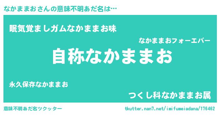 | 男性向けラノベタイトル風あだ名 | 『Re:なかままおから始める異世界生活』 |