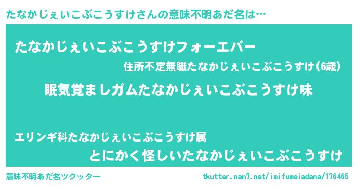 | 女子向けラノベタイトル風あだ名 | 『たなかじぇいこぶこうすけ恋絵巻』 |