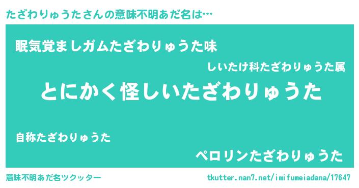 | 男性向けラノベタイトル風あだ名 | 『たざわりゅうたの嫁は女の子じゃないと思った?』 |