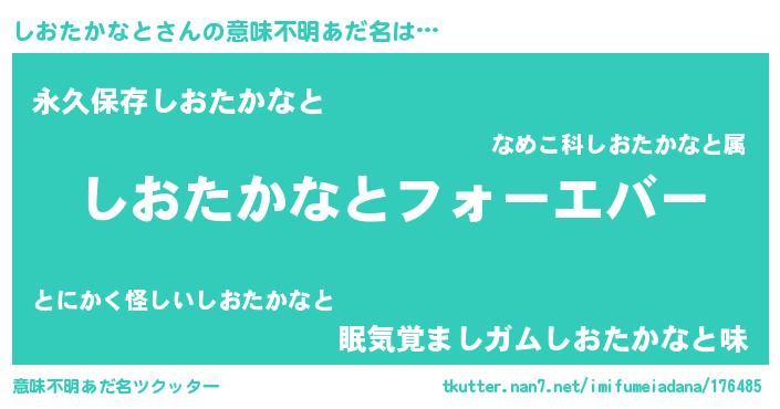 | 女子向けラノベタイトル風あだ名 | 『しおたかなとの雑貨屋さん』 |