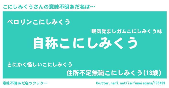 | 男性向けラノベタイトル風あだ名 | 『こにしみくうに滅ぼされるだけの簡単なお仕事です』 |
