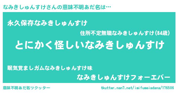 | ポケモン風あだ名 | 『ヒナミキシュンスケ』『ゼニナミ』 |