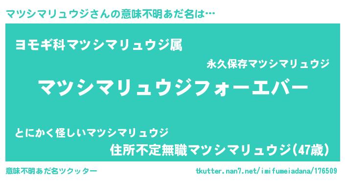 | ファンタジー風あだ名 | 『エターナルマツシマリュウジー』 |