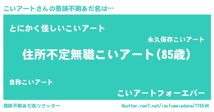 | 胡散臭い通販商品みたいなあだ名 | 『あなたにだけ特別に提供する世界で10本だけ現存している希少なブランデー…その名も「こいアート」』 |