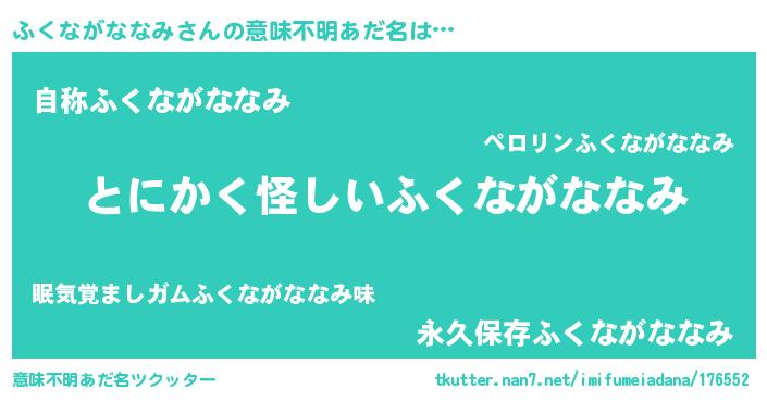 | ポケモン風あだ名 | 『ヒフクナガナナミ』『フクセウス』 |
