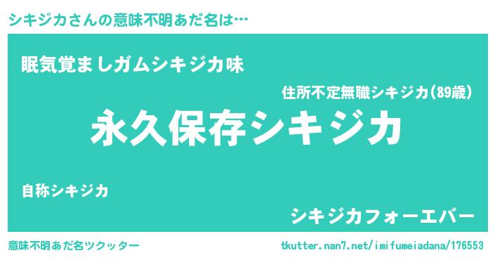 | 胡散臭い通販商品みたいなあだ名 | 『来世でも幸せになれる水素水…その名も「シキジカ」』 |