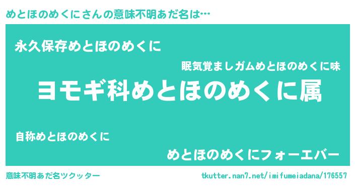 | ヘコむあだ名 | 『めとほのめくに(笑)』『酢こんぶ』 |