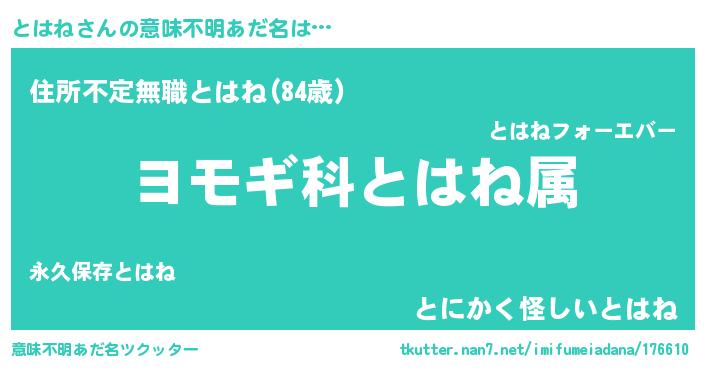 | ヘコむあだ名 | 『とはを』『牛乳』『とはね(小並感)』 |