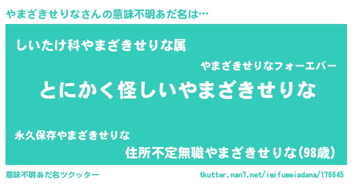 | 男性向けラノベタイトル風あだ名 | 『ダンジョンにやまざきせりなを求めるのは間違っているだろうか』 |