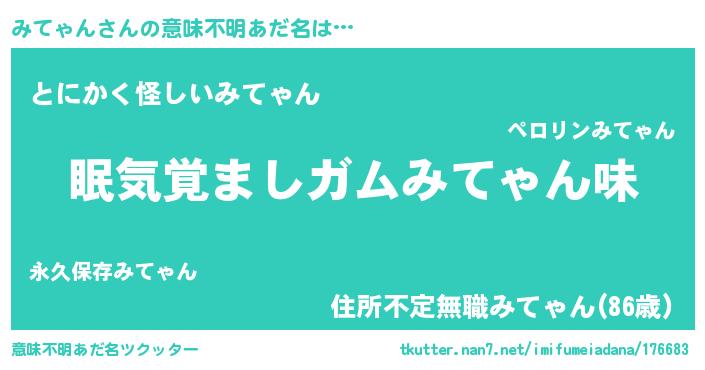 | 女子向けラノベタイトル風あだ名 | 『みてゃん恋絵巻』『みてゃんの契約王妃』 |