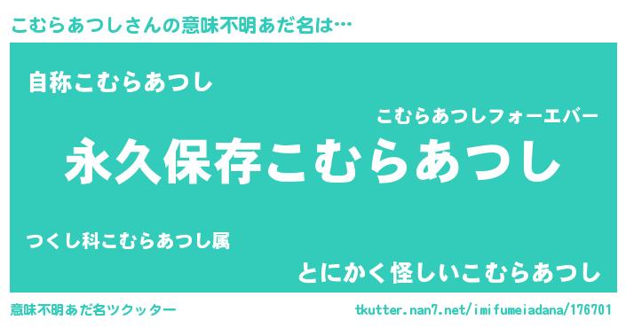 | 女子向けラノベタイトル風あだ名 | 『こむらあつしの契約王妃』 |