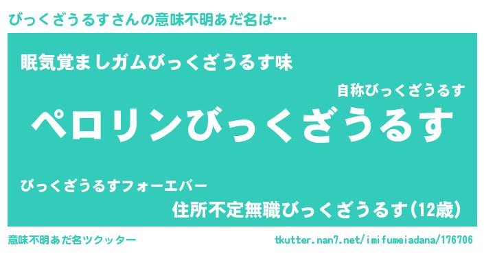 | 男性向けラノベタイトル風あだ名 | 『びっくざうるすの憂鬱』 |