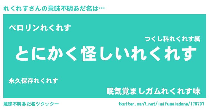 | 男性向けラノベタイトル風あだ名 | 『れくれすの嫁は女の子じゃないと思った?』 |
