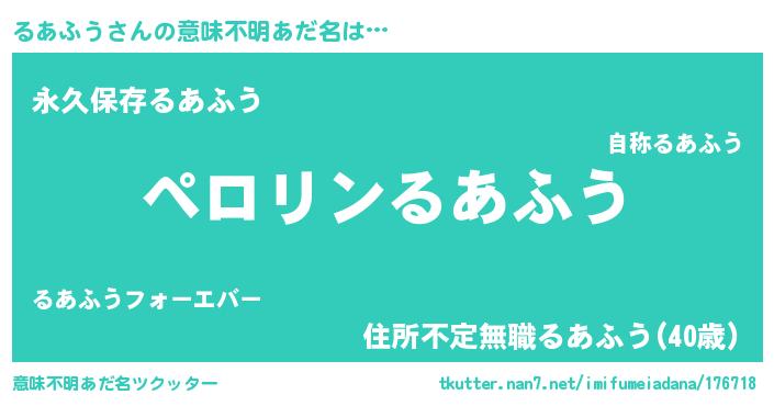 | 恥ずかしいあだ名 | 『プリティーるあふう』『るあちん』 |