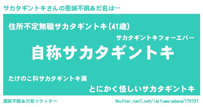 | 肩書あだ名 | 『サカタギントキ閣下』 |