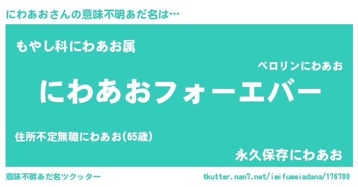 | 欧米人風あだ名 | 『にわあおクリステル』 |